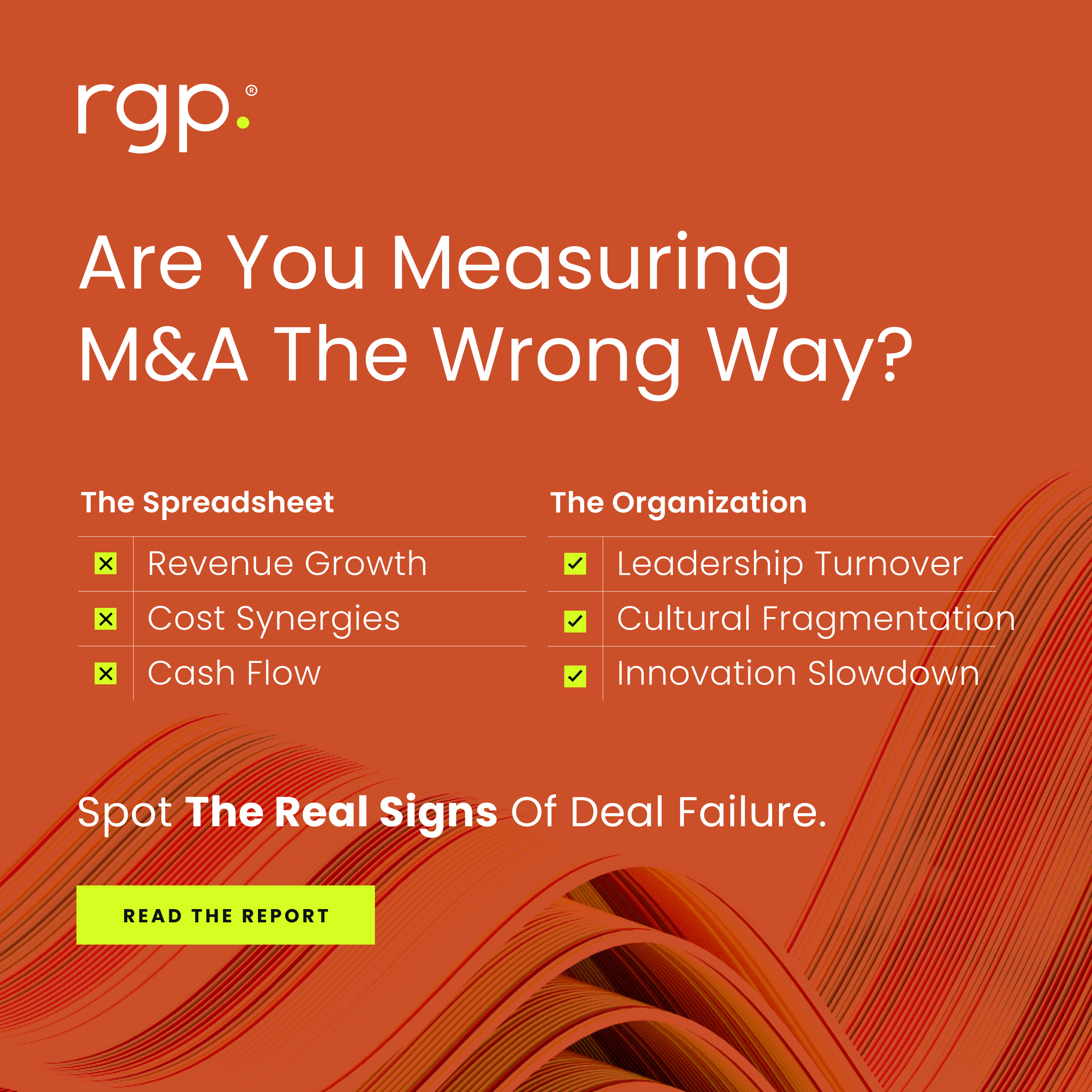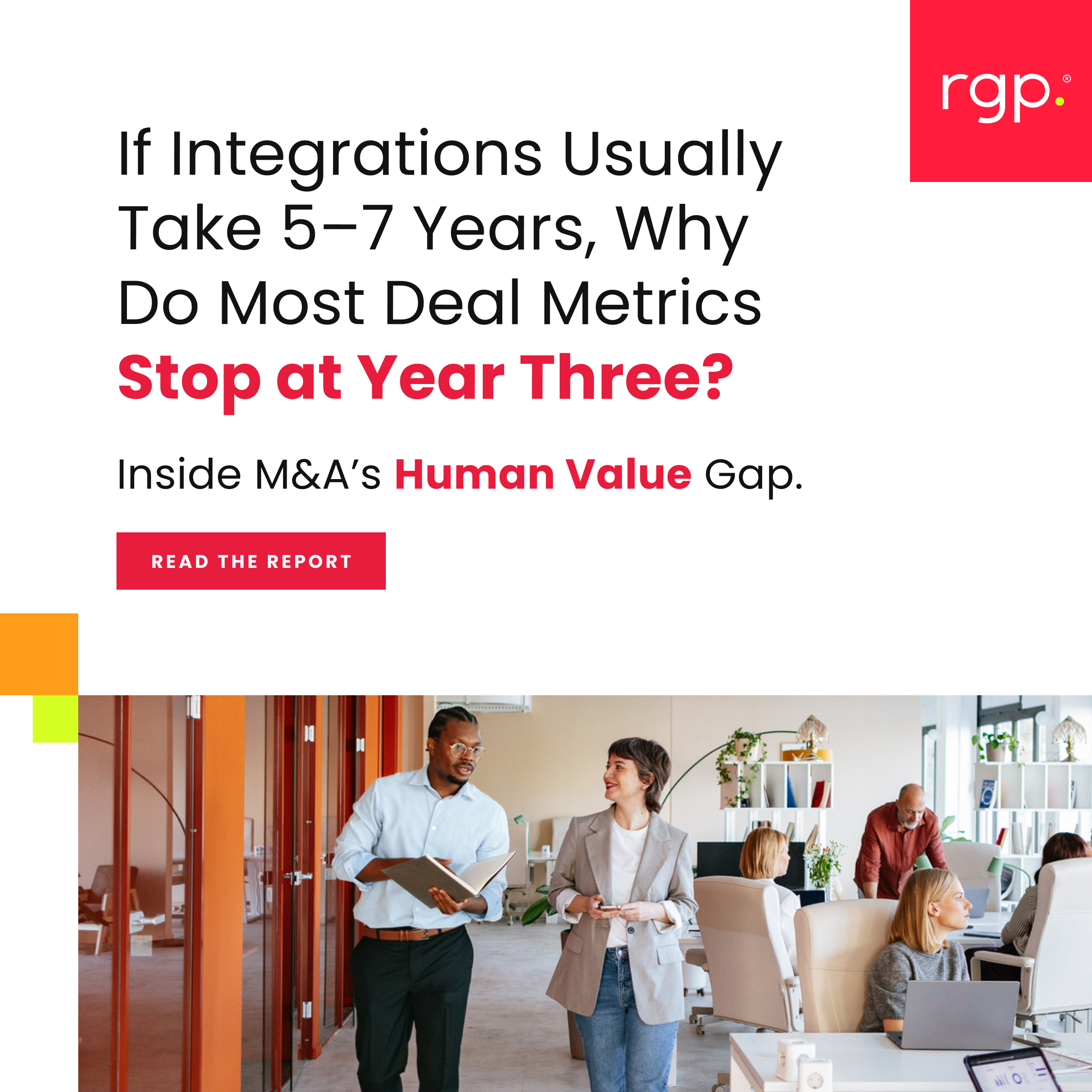 Imagine brokering a multi-million dollar deal between two companies and, six months after close, the entire C-suite walks out the door due to blown expectations. It happens more often than you’d think and it’s just one insight in RGP's Human Value Gap in M&A report — a study of 120 CFOs and 15 CHROs that reveals why culture, talent, and organizational integration are now the defining factors in whether a deal actually delivers.